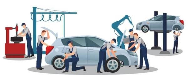 ورش الصيانة: إصلاح الأعطال الميكانيكية والكهربائية المكملة لعملية السمكرة والطلاء، لضمان عمل السيارة بكفاءة بعد الإصلاح.
